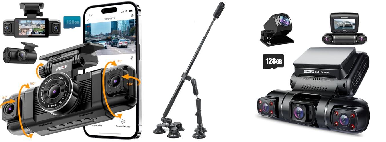 The IIWEY N5 is a 4-channel dash cam that sees everything around your car. It records the front, back, and sides, as well as the inside. This dash cam uses 1080P resolution for clear videos. It also has night vision with infrared lights to see in the dark. The N5 comes with a free 128GB SD card and uses 5G WiFi to connect to your phone. This lets you control the camera with an app.