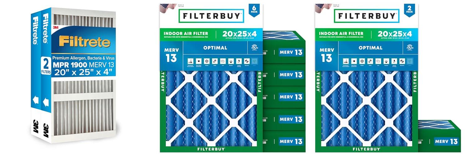 3. Filterbuy 20x25x4 Air Filter MERV 13 Optimal Smoke & Allergy Defense (2-Pack)