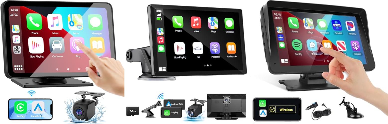 Upgrade your driving experience with the Apple Carplay Screen for Car! This 7″ HD portable car stereo is packed with features. It offers wireless Apple CarPlay and Android Auto, letting you use your phone’s apps easily. It also has a backup camera for safer parking. Plus, you get a bright 7-inch touchscreen, GPS navigation, and wireless mirror link. Installation is super easy – it plugs right into your car!