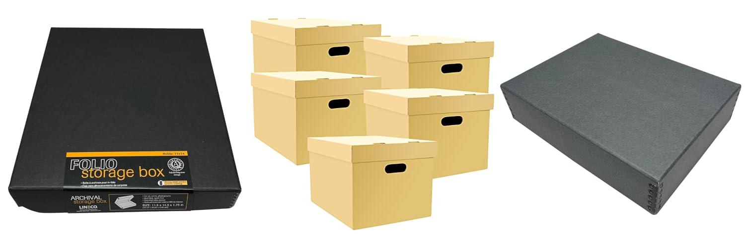 Think about what you need to store. Boxes come in many sizes. Some are for photos, others for legal documents, and some are large enough for artwork or textiles. Measure what you need to store before you buy.