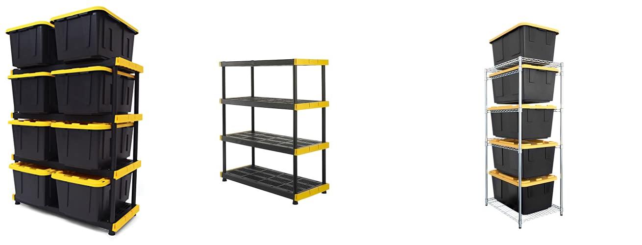 CX Black & Yellow®, Shelving Unit and Heavy Duty Storage Containers, Extremely Durable® (Shelf + 27 Gallon Container (8-Pack)
