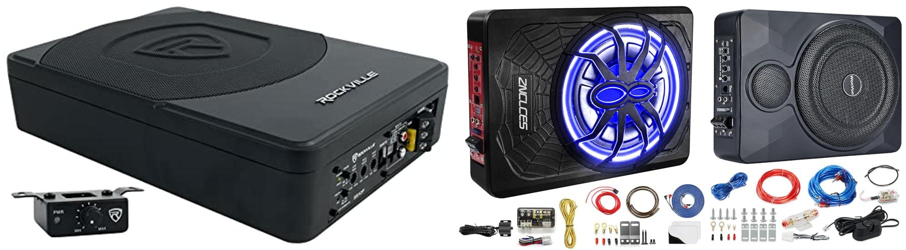 1. Rockville SS10P 800W Slim Under-Seat Active Car/Truck Subwoofer