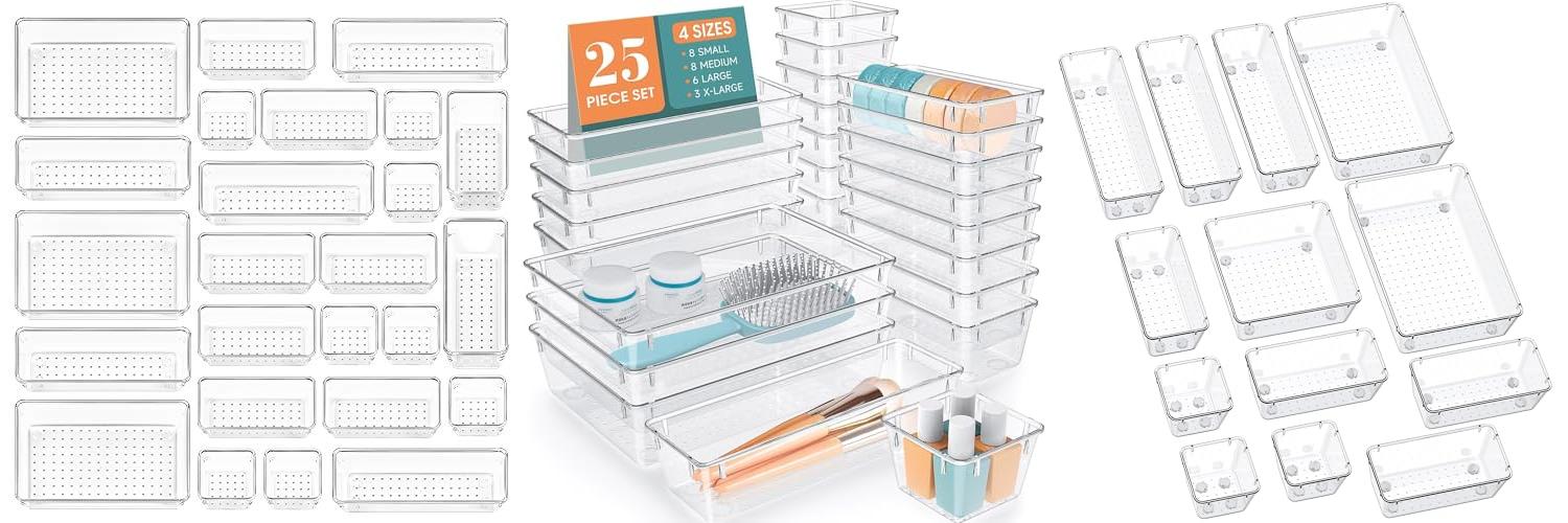 1. Vtopmart 25 PCS Clear Plastic Drawer Organizers Set