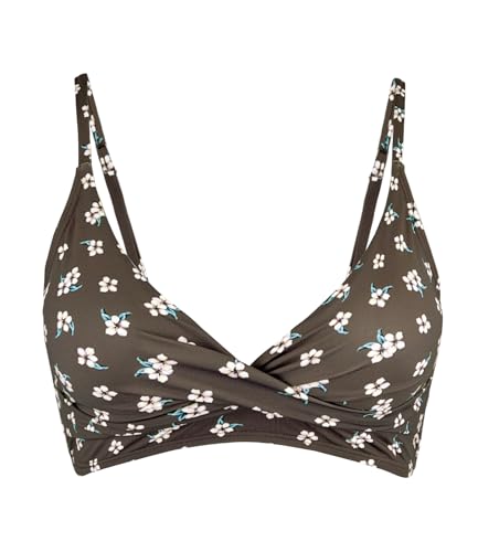 4. Women’s Push Up Sexy V Neck Adjustable Twist Ruched Front Bikini Swimsuit Top Only Brown Floral