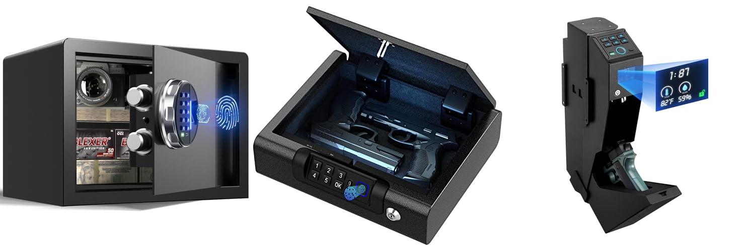 2. Biometric Gun Safe for Pistols 3-Ways unlock Fingerprint Digital PIN Key Unlock Handgun Safe with Sound