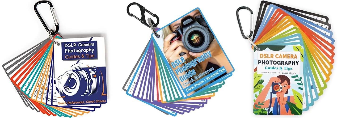 • Must-Have Camera Accessories: Includes 30 pages of useful photography tips. The 16 double-sided DSLR cheat sheets are color-coded. They work with any camera model, like Canon, Nikon, and Sony.