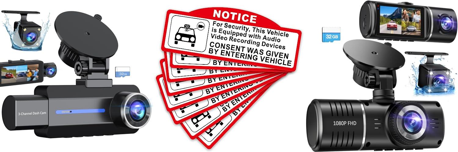 This 3-channel dash cam is like having a security guard for your car! It records what happens in front, inside, and behind your vehicle. With its three cameras, you get a full view of the road and your car’s interior. It also comes with a 32GB SD card so you can start recording right away. It’s designed to keep you safe on the road.
