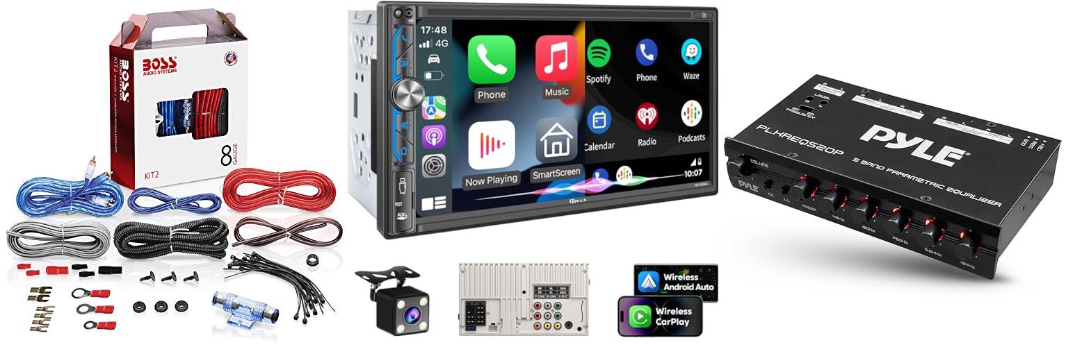 - Head Unit: This is the “brain” of your system. It controls the music. Look for features like Bluetooth, USB ports, and a touchscreen. Some units have Apple CarPlay or Android Auto. This lets you use your phone on the screen.