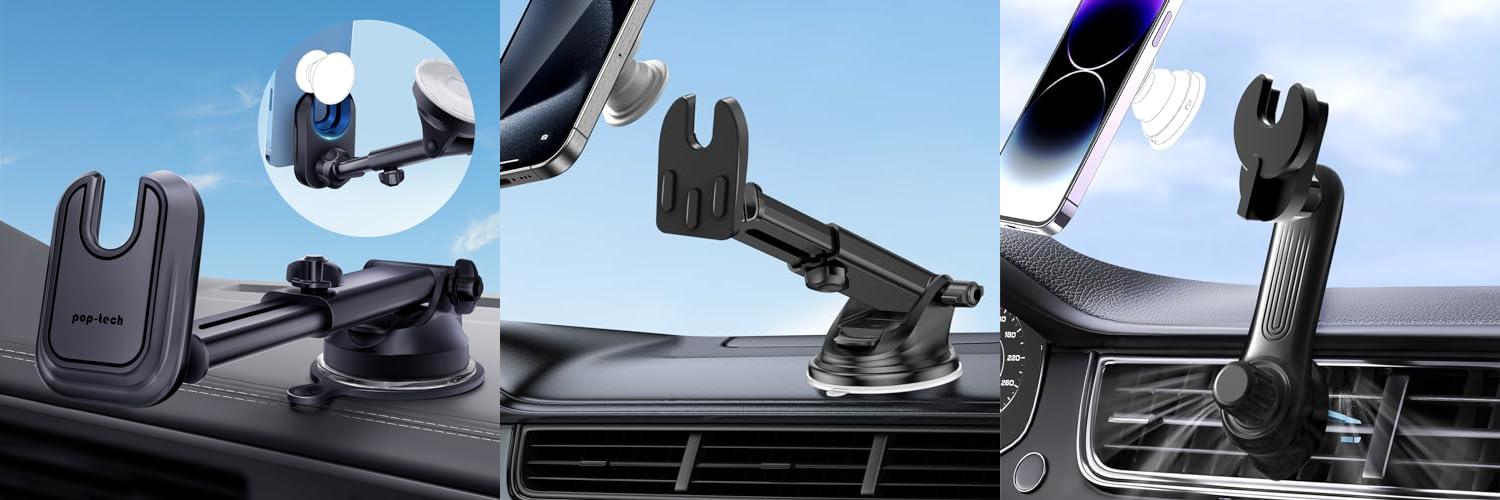 The pop-tech Car Phone Mount is made for people who use PopSockets! This car phone holder uses a strong suction cup. It sticks to your dashboard or windshield. It works with many different types of PopSockets, even thick ones. You can easily adjust your phone to see it clearly while driving. It’s a handy gadget for anyone who wants a safe and easy way to use their phone in the car.