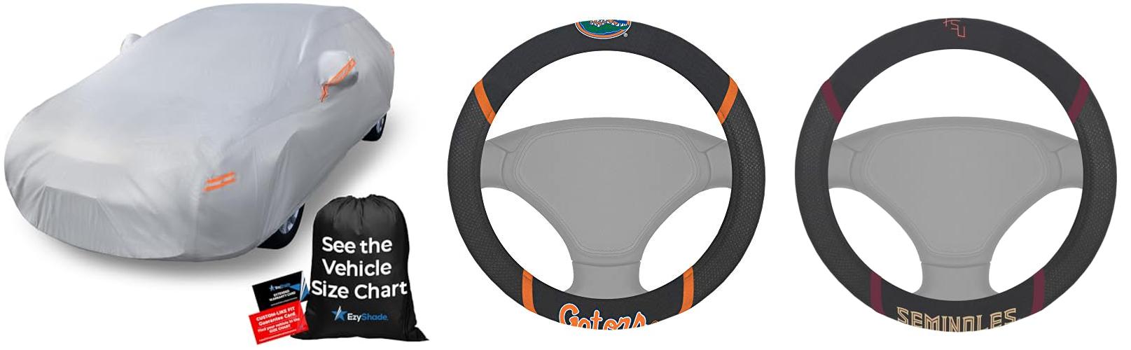 4. MULTI_B University of Florida Automotive Gift Set.Wow! Logo On Front and Rear Auto Floor Liner. You get 2 Head Rest Cover 4 Floor Mat and 1 Wheel Cover in This Gift Set. Perfect to Florida Gators Fan
