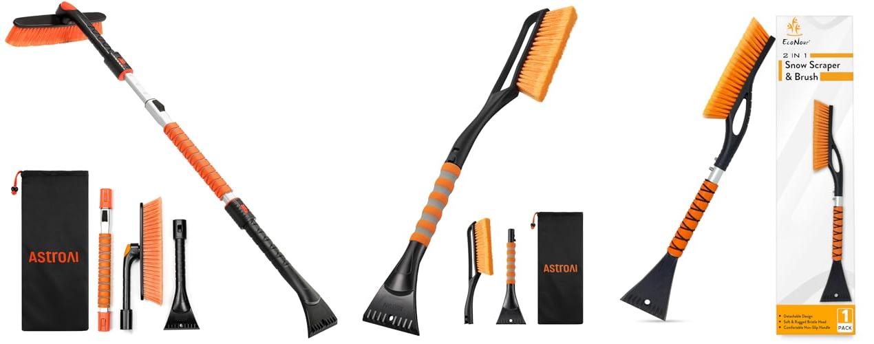 1. AstroAI 47.2″ Ice Scrapers for Car Windshieldand Extendable Snow Brush with Foam Grip and 360° Pivoting Brush Head for Christmas Car Auto Truck SUV(Orange)