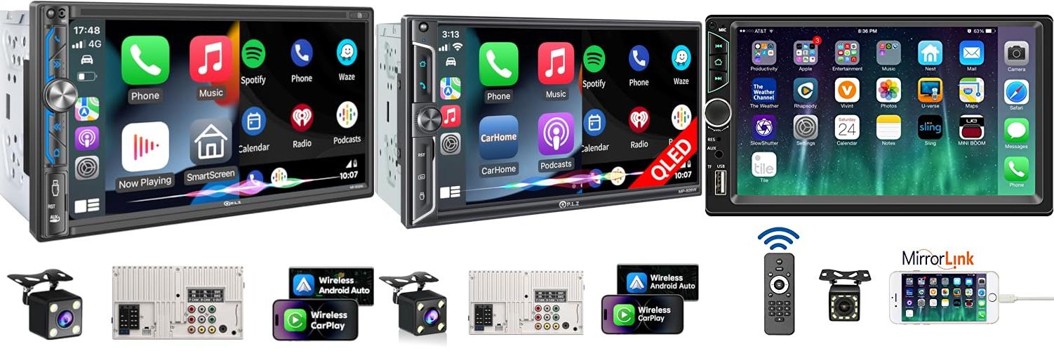 1. PLZ 7″ Wireless Double Din Car Stereo Apple Carplay Radio Screen for Car Audio Receivers