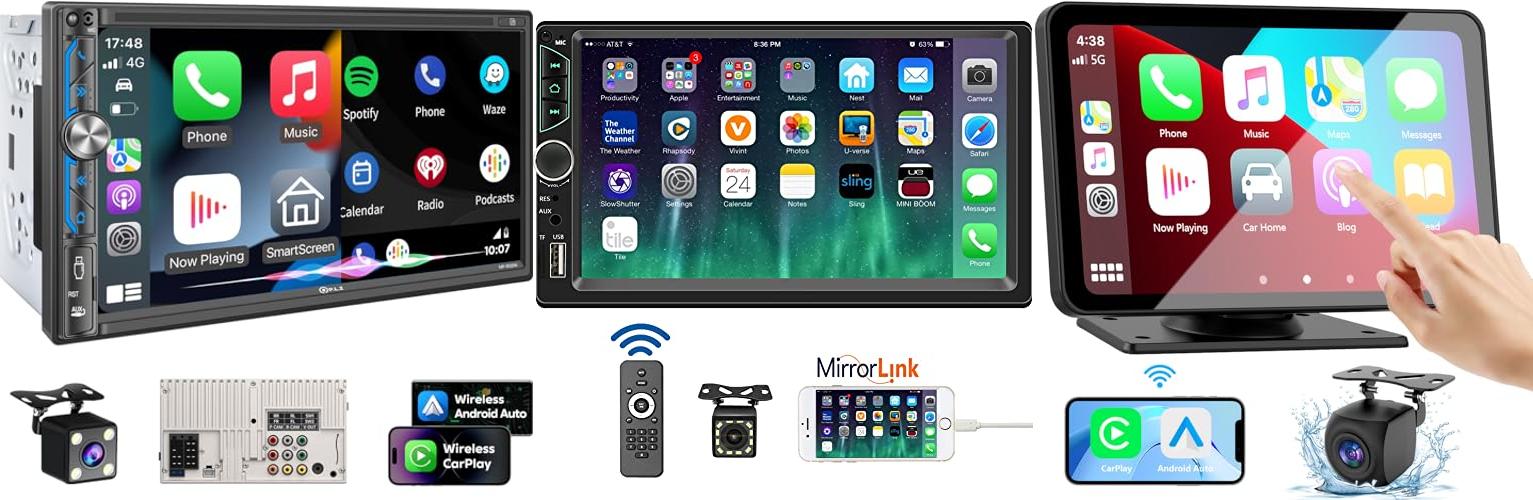 ![[Upgrade Wireless] 7" Double Din Car Radio with Wireless Apple CarPlay and Android Auto](https://m.media-amazon.com/images/I/51R5XB4qDmL._SL500_.jpg)