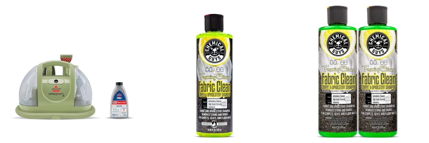 The Chemical Guys CWS2031602 Foaming Citrus Fabric Clean is a powerful cleaner. It helps you make your car’s carpets, seats, and upholstery look new again. This shampoo removes dirt, stains, and bad smells. It is safe to use in your car, home, or office. This product comes in a two-pack of 16-ounce bottles.