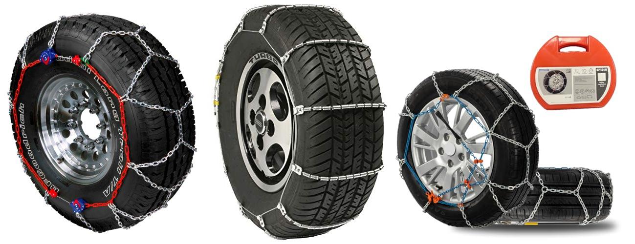 Tire chains are great for snow and ice. They help you drive safely in bad weather.