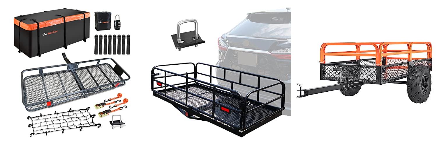 1. MeeFar Folding Hitch Mount Cargo Carrier Basket 60″ X 20″ X 6″+Waterproof Cargo Bag 16 Cubic Feet(58″ 19″ 24″)