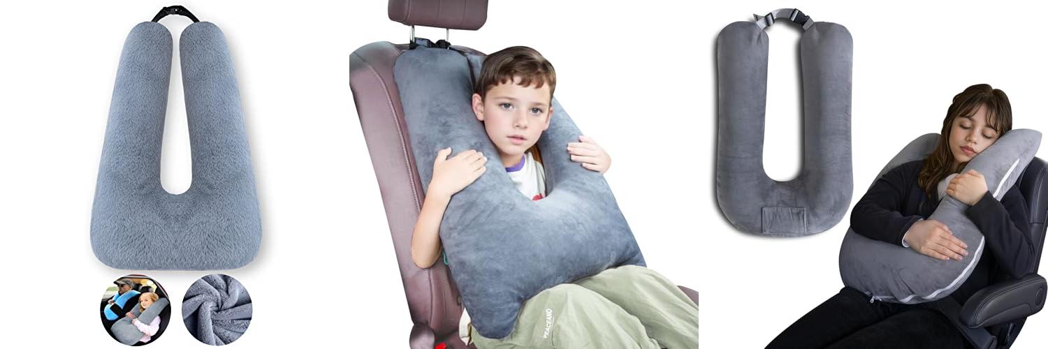 1. FHSGGP Travel Pillow Car Pillow Kid Car Sleeping The Sleeping Aid for Adults and Kids on Road Trips Kids Travel Pillow Gray