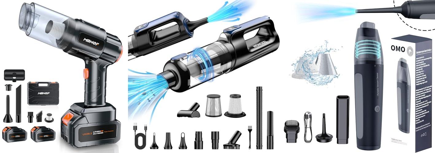 Tired of crumbs and dust in your car? The MONOZEL Car Vacuum is here to help! This handy, cordless vacuum is a 2-in-1 cleaner and air duster. It has a strong motor that sucks up dirt and blows away debris. It also comes with lights to help you see in dark spots. This vacuum is great for your car, home, or office. It even has nozzles to inflate things!