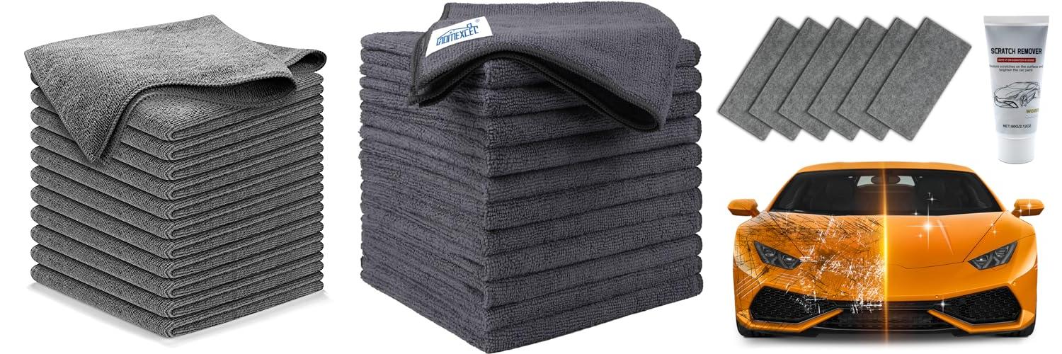 The HOMEXCEL Microfiber Cleaning Cloth 12 Pack is a great cleaning solution. These 12.5 x 12.5 inch microfiber towels are perfect for your car. They also work well in your kitchen and around your windows. They are ultra-absorbent car washing cloths, and they are lint-free. They will leave your surfaces streak-free. This pack of grey cloths is ready to tackle any cleaning job!