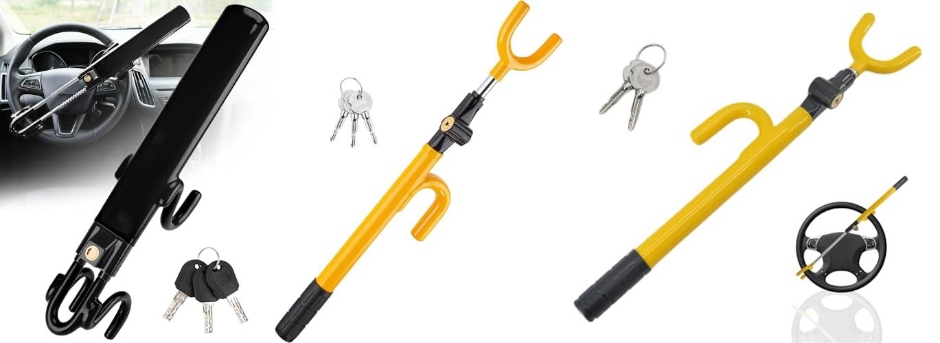 1. Tevlaphee Steering Wheel Lock Anti-Theft Car Device Heavy Duty Security Car Lock Antitheft Locking Devices Great Deterrent Adjustable Car Wheel Lock Anti Theft for Vehicle Truck with 3 Keys(Black)