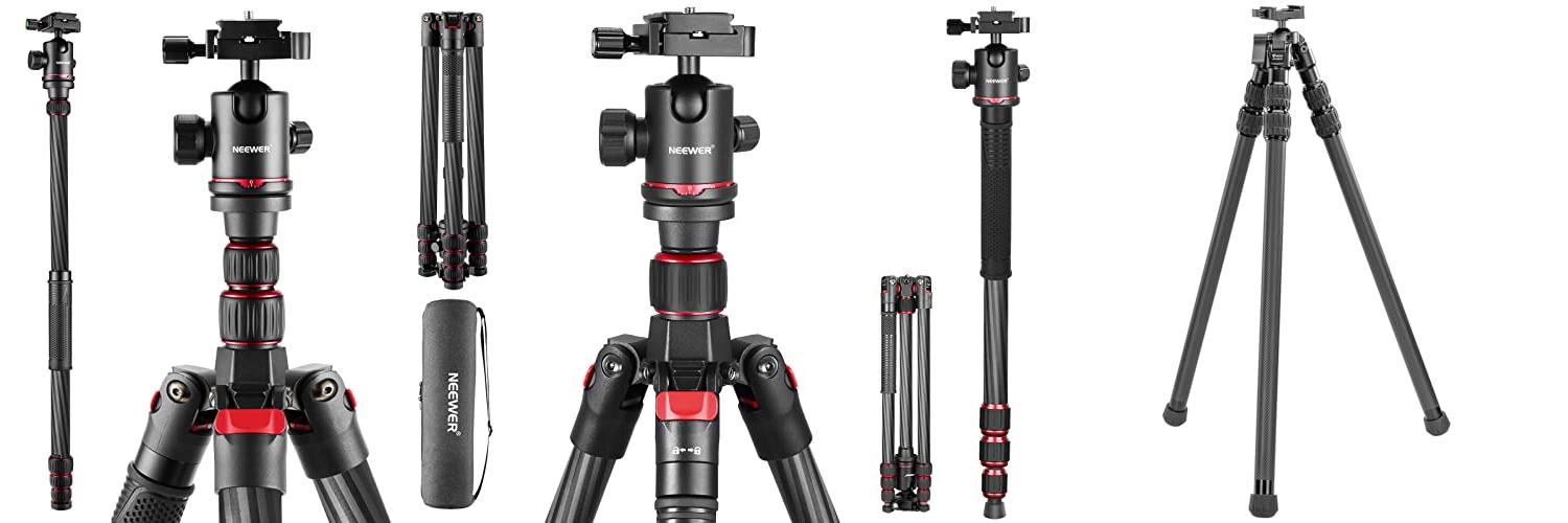 1. NEEWER Upgraded 80.7″ Carbon Fiber Camera Tripod Monopod with Telescopic 2 Section Center Axes