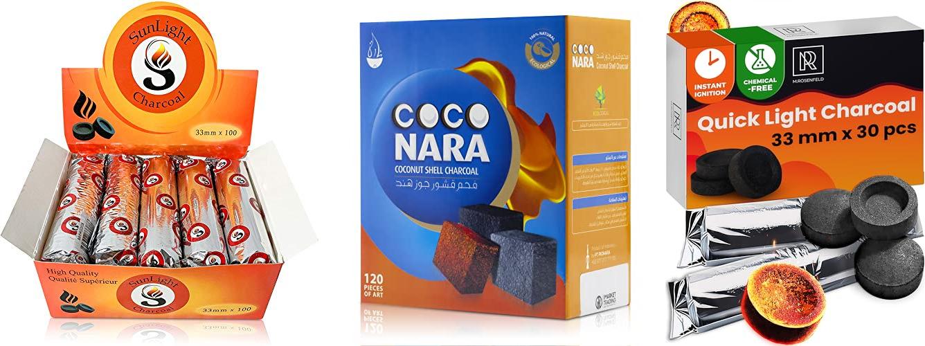 Avoid charcoals labeled “quick-light” that come in boxes with red lettering. These often contain accelerants that can add a chemical taste and smell to your session.