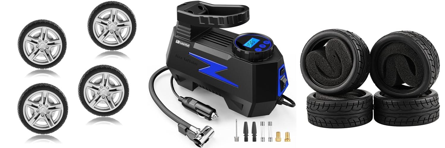 The FADAKWALT Tire Inflator is a portable air compressor. It is a DC 12V tire air pump. It has an LED light and a digital pressure gauge. This tire inflator is great for car tires, motorcycles, bikes, and balls. It’s small and easy to store, perfect for keeping in your car for emergencies.