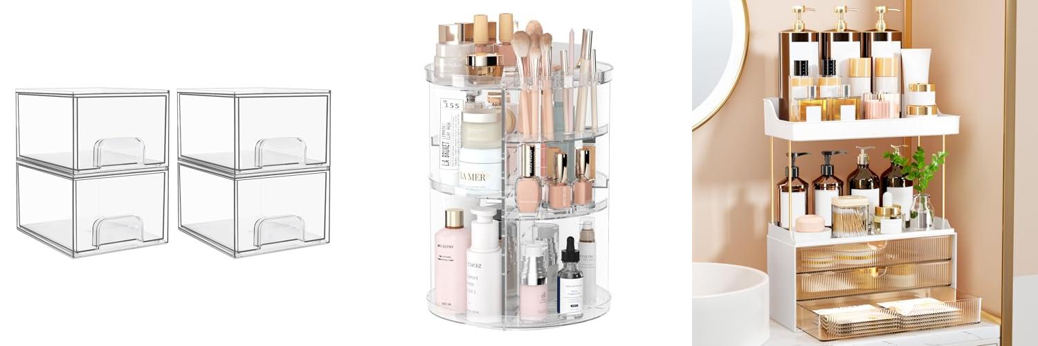 - Skincare Storage: If you have a lot of serums and creams, tiered drawers or tall organizers can hold all your skincare bottles and jars neatly. Some organizers even have special spots for makeup brushes.
