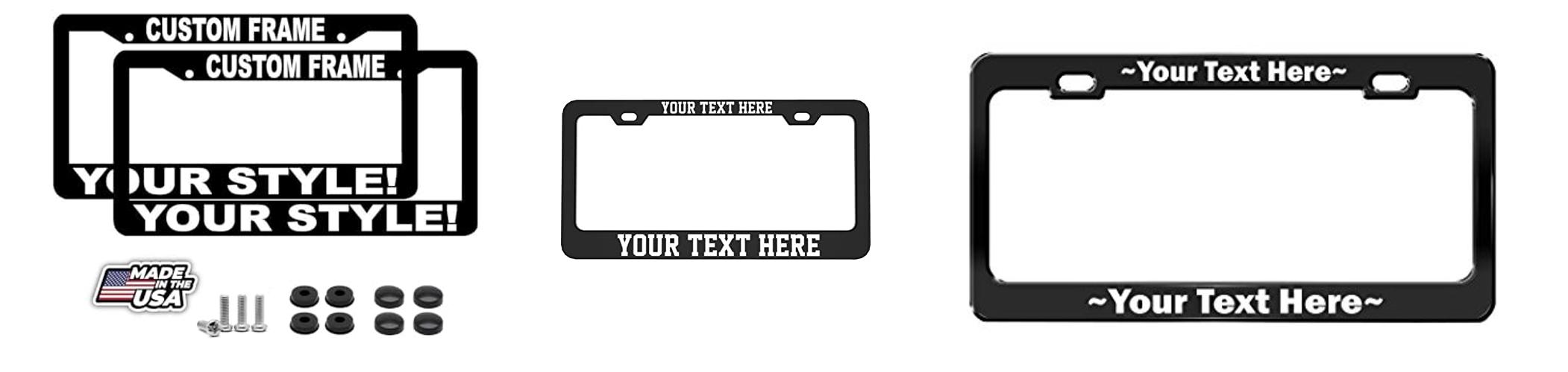 This is where the fun begins! Think about what you want on your frame. Do you want your name, a funny saying, your favorite sports team logo, or a business name? Many companies offer a wide range of fonts, colors, and even the ability to upload your own graphics.