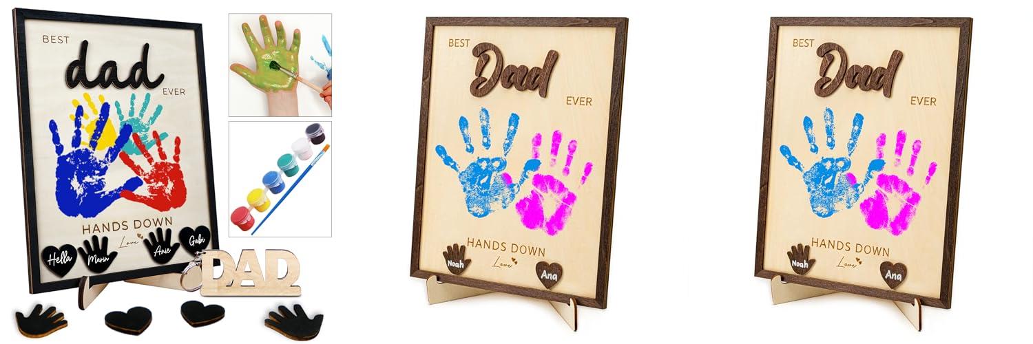 2. DuduCraft 10″ Display Size Best Dad Ever Hands Down Sign – Christmas gifts for dad from kids – Father’s Day Handprint Gift from Kids