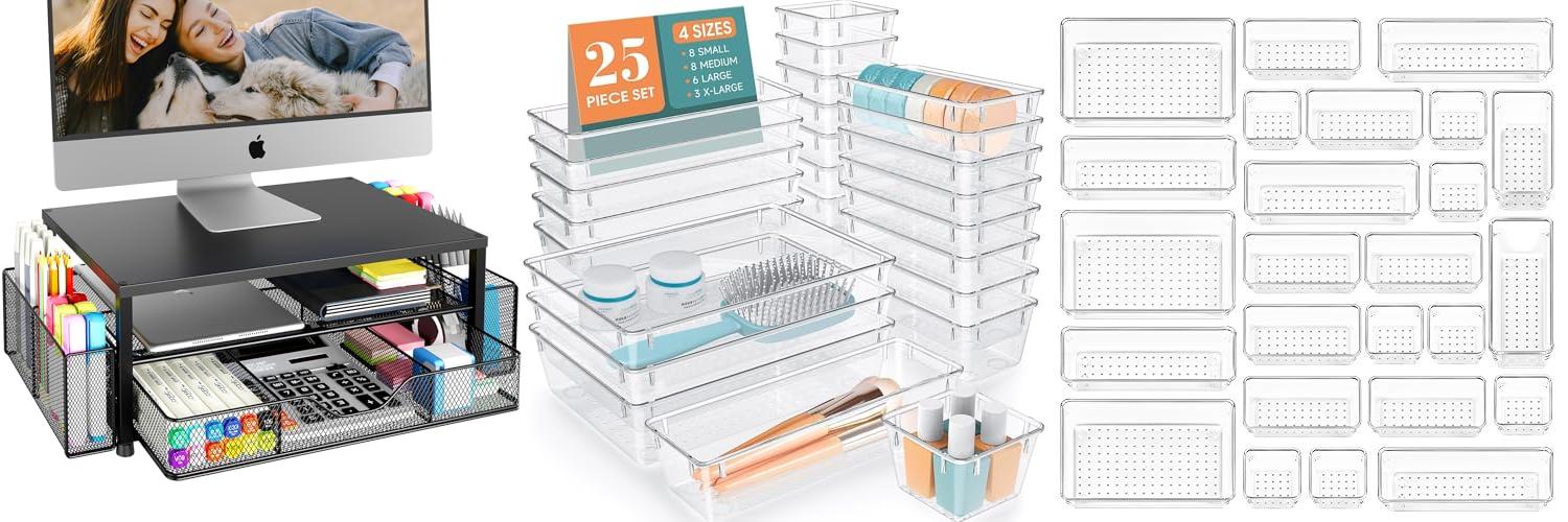 Tired of messy drawers? The Vtopmart 25 PCS Clear Plastic Drawer Organizers Set is here to help! This set offers a simple solution to declutter your bathroom, vanity, kitchen, or office. You can finally keep all your small items tidy and easy to find.