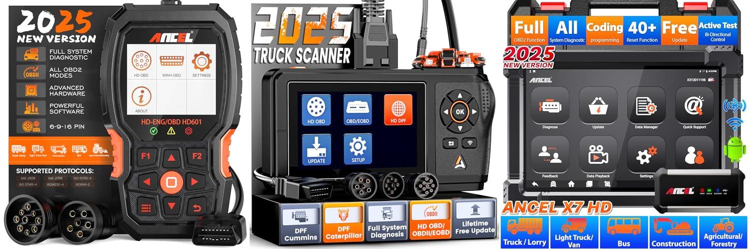 The ANCEL HD430 Heavy Duty Truck Scanner is a powerful tool for diesel truck owners and mechanics. It’s designed to help you diagnose and fix problems with your truck’s engine and other systems. This scanner is especially good for managing your truck’s Diesel Particulate Filter (DPF), which is a common issue for Cummins and Caterpillar engines.
