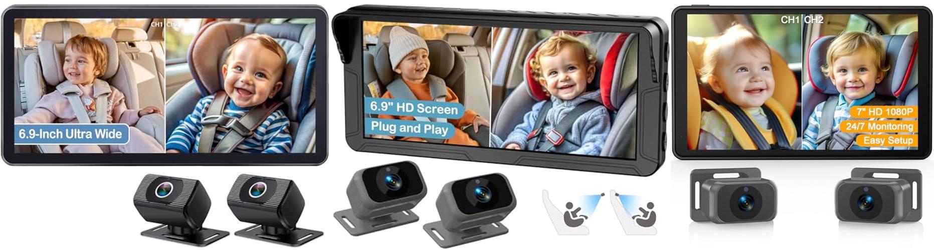 1. 2-Kids Baby Car Camera for Seat: 6.9 Inch Ultrawide Display with Two Cameras Rear Facing – USB Powered Backseat Camera HD 1080P Easy to Install