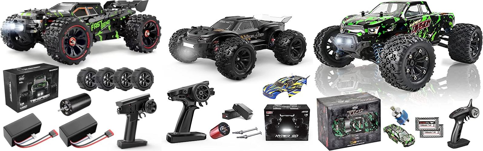 - Beginners: Start with a RTR car. Choose a 2WD car.