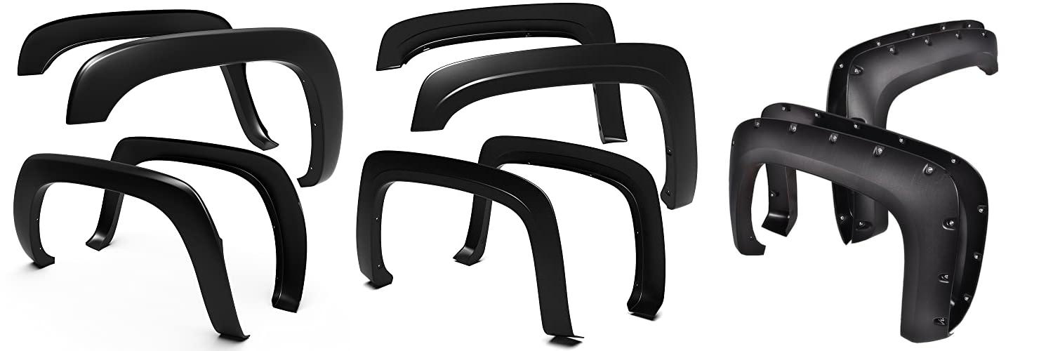 • Style: Flares come in many styles. Some are smooth and sleek. Others are aggressive and bolt-on looking. Choose a style that matches your truck or SUV.