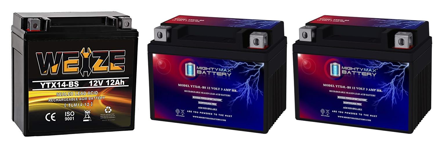 1. Weize YTX14 BS ATV Battery High Performance – Maintenance Free – Sealed AGM YTX14-BS Motorcycle Battery compatible with Honda Suzuki Kawasaki Yamaha scooter snowmobile