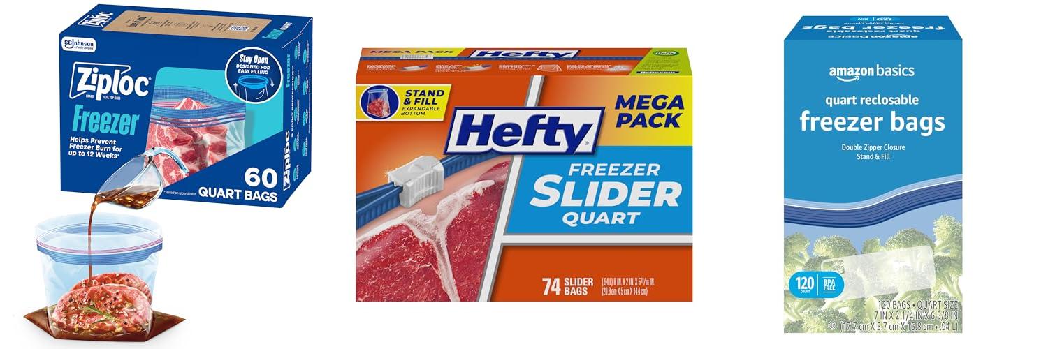 3. Amazon Basics Reclosable Freezer Quart Bags