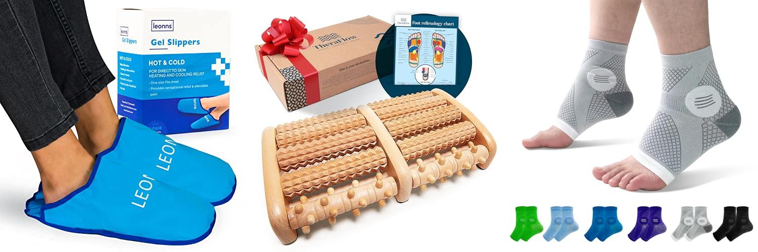 A: Cushioned insoles, soft slippers, foot rollers, and warm foot baths are all great options for foot pain relief.