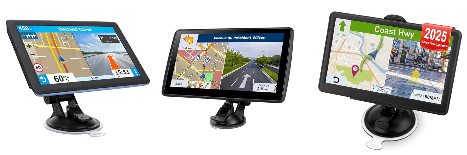 Navigate your journeys with ease using the GPS Navigator for Car Truck RV! This car GPS navigation system comes with the latest 2025 maps and lifetime free updates. It has a 7-inch touchscreen, clear voice guidance, and warnings for speed cameras. It is perfect for cars, trucks, RVs, and even pedestrians. This GPS helps you stay safe and on the right track.