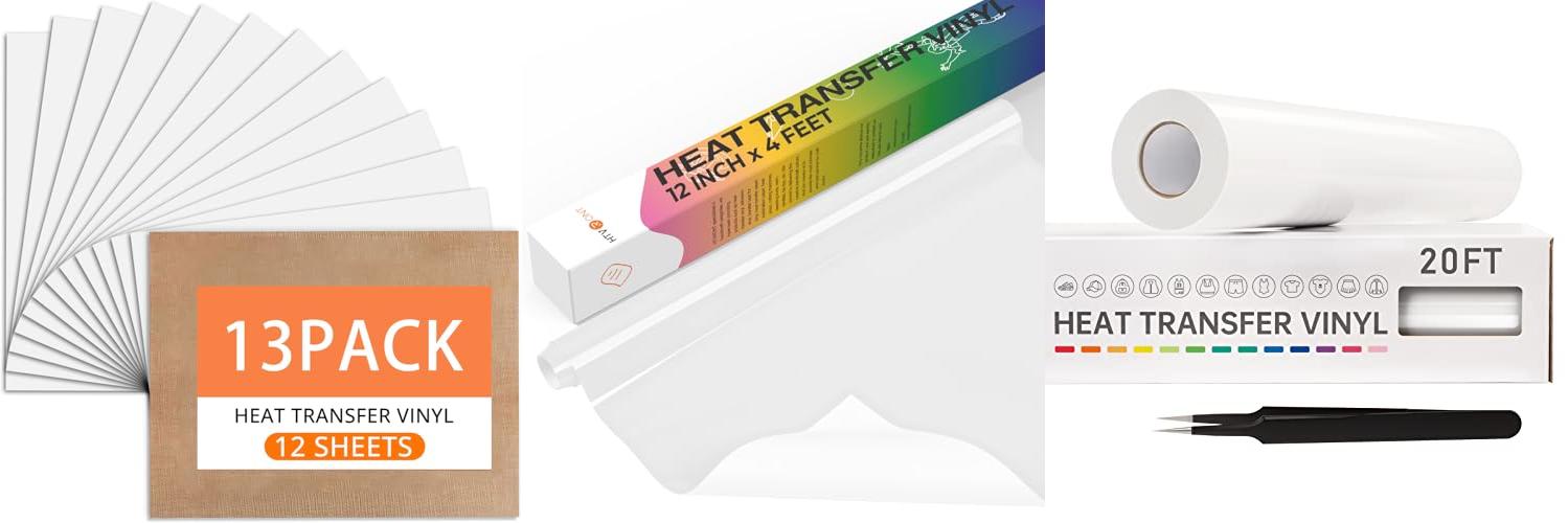 3. VinylRus Heat Transfer Vinyl-12” x 20ft White Iron on Vinyl Roll for Shirts