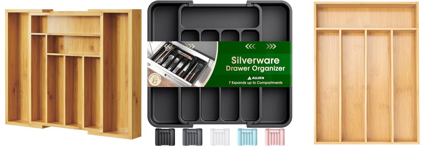 2. Aujen Silverware Organizer – Expandable Kitchen Drawer Organizer