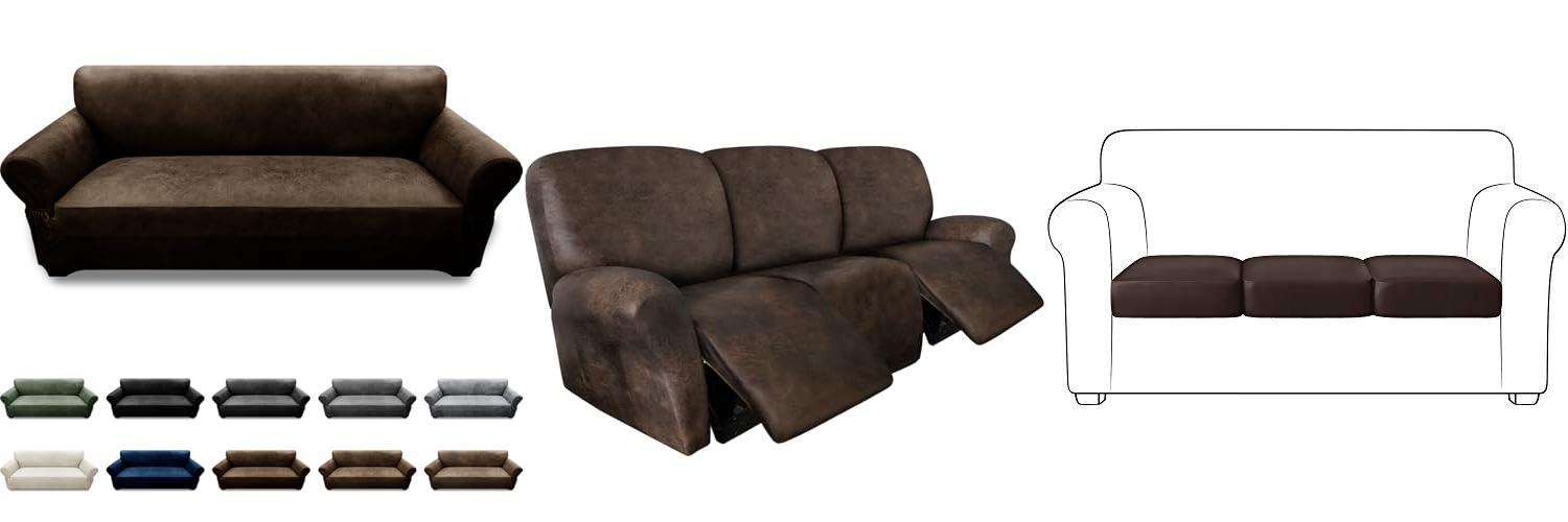 2. ANARACHON Leather Look Recliner Couch Cover 8-Piece Recliner Sofa Slipcovers 3 Seater for Reclining Couches Furniture Protector Spandex Fabric Washable (Recliner Sofa