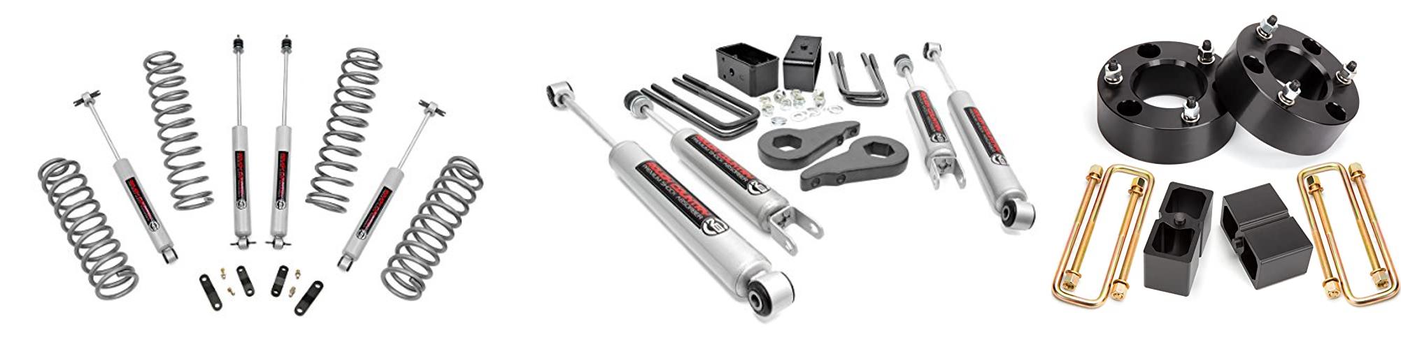 A lift kit is a set of parts that raise your vehicle’s body or suspension. This gives your vehicle more ground clearance. More ground clearance means you can fit bigger tires. Bigger tires help you drive over obstacles on trails. It also gives your truck or SUV a more aggressive look.