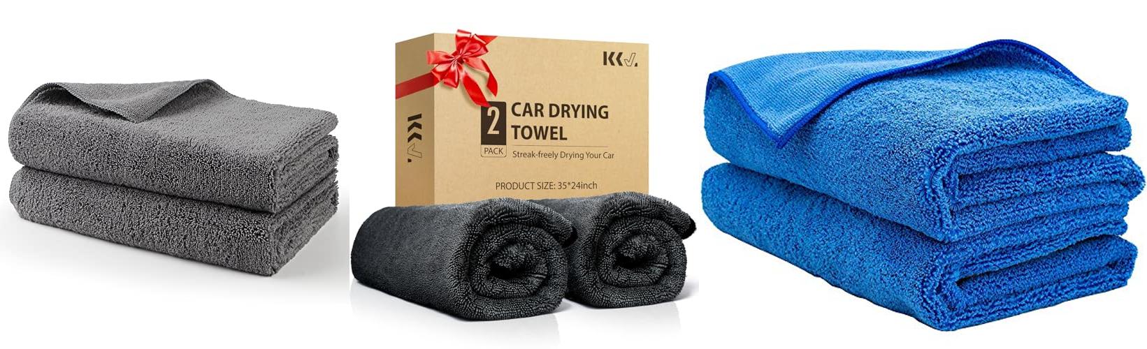 The KKV 2-Pack Microfiber Towels are big, absorbent towels. They are designed to dry your car without leaving any streaks or scratches. These towels are great for car lovers who want a clean, shiny finish. You can also use them around the house.