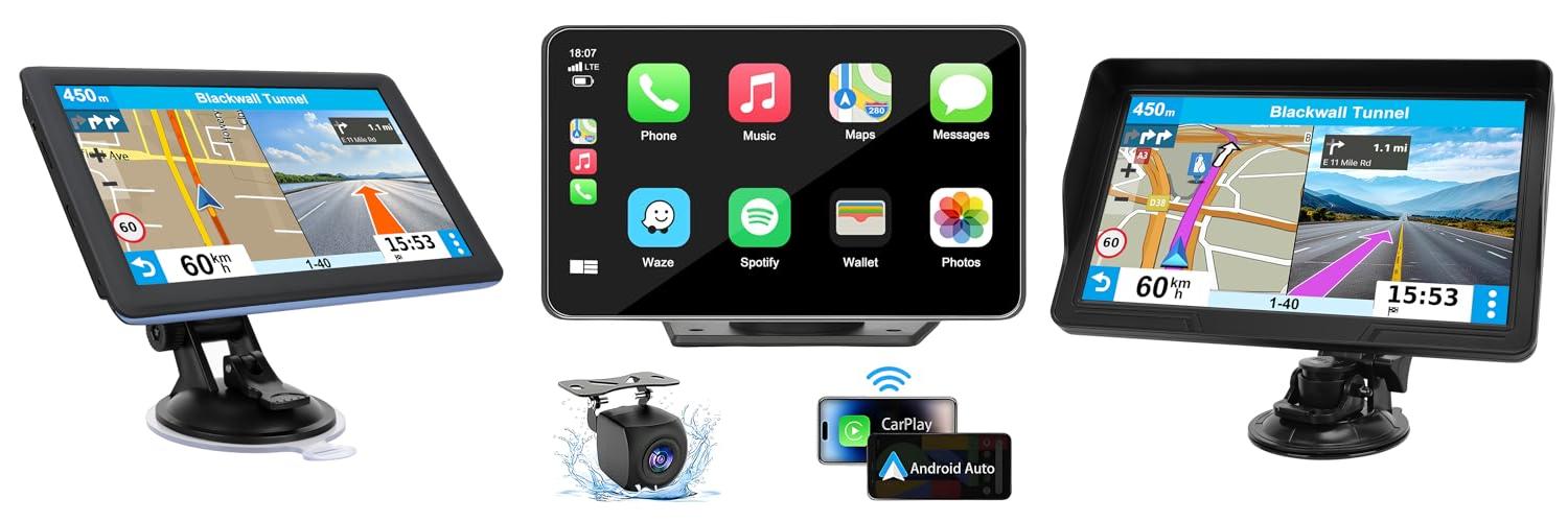 Wireless Carplay Screen for Car 7" HD Portable Car Stereo Touchscreen with Apple CarPlay and Android Auto with Mirror Link/Backup Camera/Bluetooth/GPS Navigation/AUX for All Vehicles
