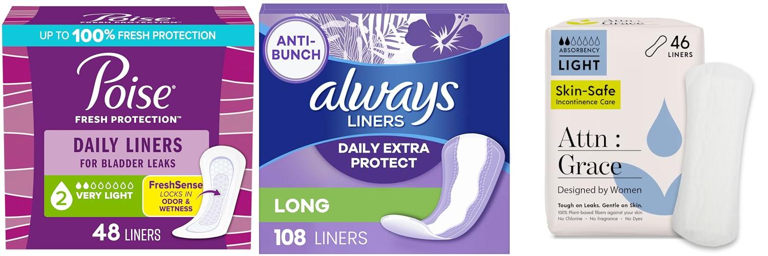 A: For overnight protection, it’s usually better to use a product designed for nighttime incontinence, as panty liners are for very light leaks.