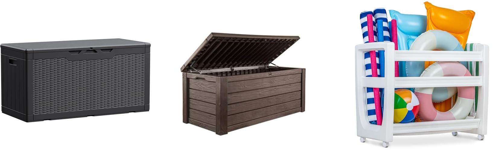 • Aesthetics: You want your pool area to look nice. Many storage options come in different colors and styles to match your backyard decor.