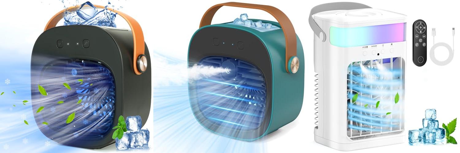 Beat the heat with the Portable Air Conditioners, Personal Evaporative Air Cooler! This handy device is a desktop cooling fan, mini air conditioner, and humidifier all in one. It’s perfect for your room, office, desk, camping trips, or even your car. This portable AC offers instant cooling relief and a refreshing mist. It’s designed to make your summer days much more comfortable.