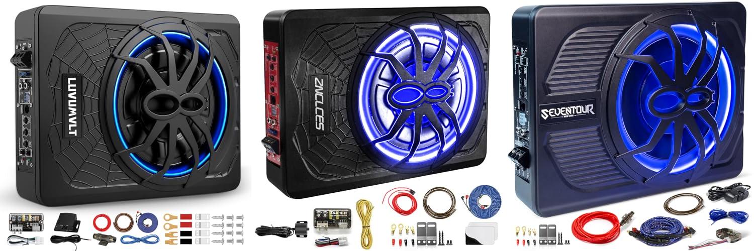 Ready to feel the bass? The Seventour 10″ Upgrade 800W Slim Under Seat Powered Car Subwoofer is your ticket to a cooler, more dynamic car audio experience. This compact powerhouse packs a punch, fitting neatly under your seat and bringing your music to life with deep, rich sound. Plus, the cool blue LED lights add a touch of flair to your ride.