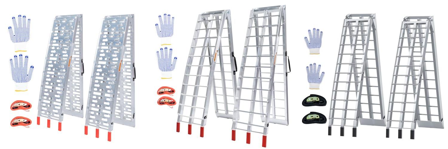 A: Aluminum ramps are lighter and won’t rust, making them easier to use and last longer in different weather. Steel ramps are strong but heavier and can rust.